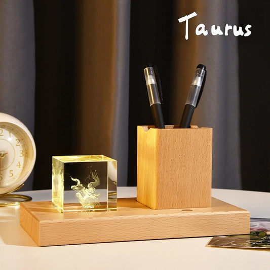 Zodiac Crystal Night Light & Pen Holder - 12 Constellation Glowing Desk Decor, Creative Gift
