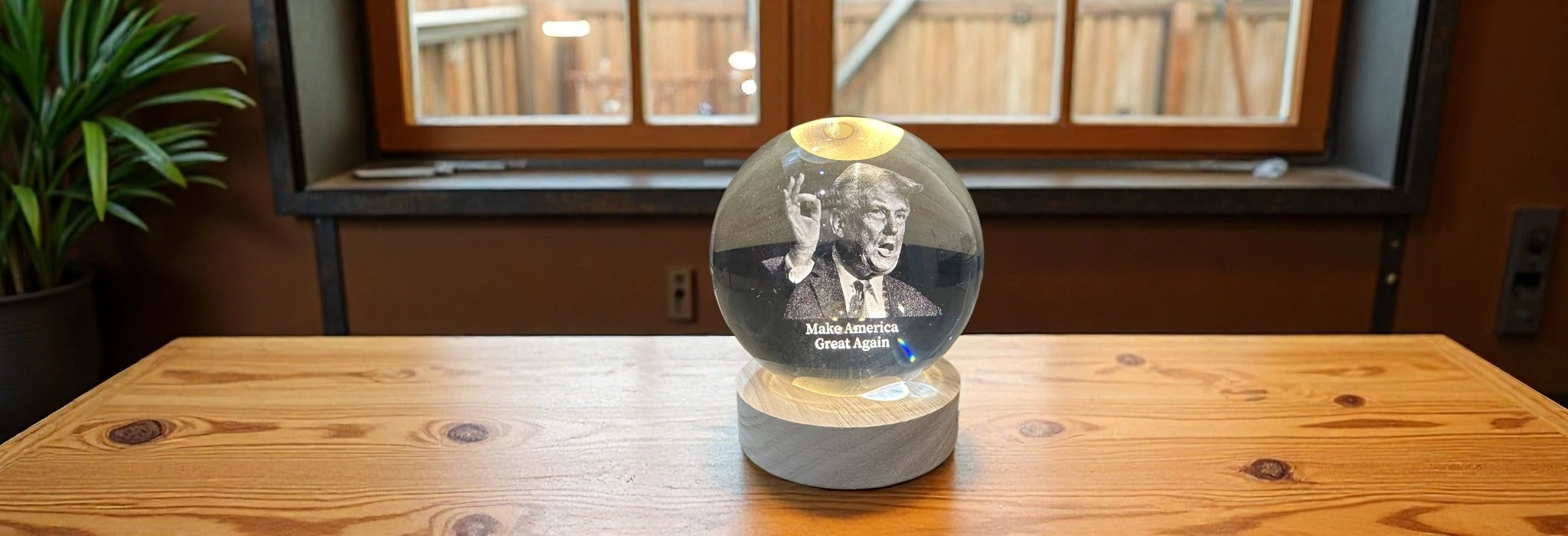 Trump 3D Crystal Photo Night Light with LED Base – “Make America Great Again”